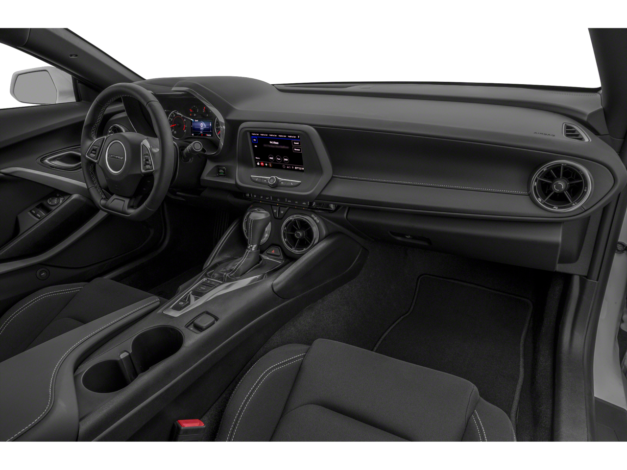 4-Wheel Disc Brakes, 6 Speakers, 6-Speaker Audio System Feature, 6-Way Power Front Passenger Seat Adjuster, 8-Way Power Driver Seat Adjuster, ABS brakes, Air Conditioning, Alloy wheels, AM/FM radio: SiriusXM, Apple CarPlay/Android Auto, Automatic temperature control, Bluetooth® For Phone, Brake assist, Bumpers: body-color, Cloth Seat Trim, Compass, Decklid-Mounted Lip Spoiler, Delay-off headlights, Driver door bin, Driver vanity mirror, Dual front impact airbags, Dual front side impact airbags, Dual Mode Exhaust, Electronic Stability Control, Exterior Parking Camera Rear, Four wheel independent suspension, Front anti-roll bar, Front Bucket Seats, Front Center Armrest, Front License Plate Bracket, Front reading lights, Front Sport Bucket Seats, Fully automatic headlights, Illuminated entry, Knee airbag, Leather Shift Knob, Low tire pressure warning, Occupant sensing airbag, Overhead airbag, Panic alarm, Passenger door bin, Passenger vanity mirror, Power door mirrors, Power driver seat, Power passenger seat, Power steering, Power windows, Preferred Equipment Group LT1, Premium audio system: Chevrolet Infotainment System, Radio data system, Radio: Chevrolet Infotainment 3 Plus System, Radio: Chevrolet Infotainment 3 System, Rear anti-roll bar, Rear window defroster, Remote keyless entry, Satin Black Appearance Package, Security system, SiriusXM Radio, SiriusXM w/360L, Speed control, Speed-sensing steering, Steering wheel mounted audio controls, Tachometer, Telescoping steering wheel, Tilt steering wheel, Traction control, Trip computer, Variably intermittent wipers, Voltmeter, Wheels: 20 5-Spoke Carbon Flash Painted Alum, Wheels: 20 Silver-Painted Aluminum.