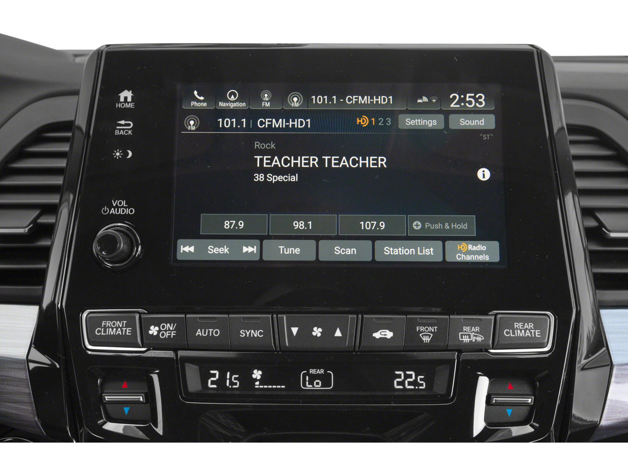 - Radio w/Seek-Scan, In-Dash Mounted Single CD, MP3 Player, Clock, Speed Compensated Volume Control, Multi-Source Rear Controls, Voice Activation, DVD-Audio and My Honda Music Internal Memory