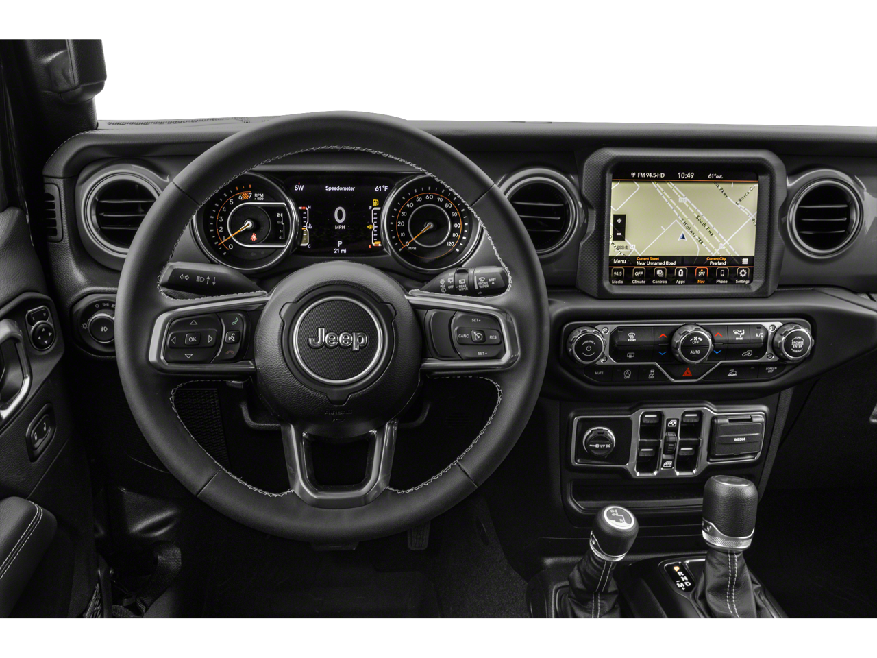 240 Amp Alternator, 4-Wheel Disc Brakes, 7 & 4 Pin Wiring Harness, 700 Amp Maintenance Free Battery, 9 Speakers, ABS brakes, Air Conditioning, Alloy wheels, AM/FM radio: SiriusXM, Anti-Lock 4-Wheel FNC Disc Brakes, Apple CarPlay/Android Auto, Auto-dimming Rear-View mirror, Automatic temperature control, Aux Battery, Auxiliary Switches, Blind Spot & Cross Path Detection, Body Color 3-Piece Hard Top, Body Color Door Handles, Body Color Front Bumper, Body Color Fuel Filler Door, Body Color Grille w/Gloss Black Rings, Body Color Rear Bumper w/Step Pads, Brake assist, Caramel Interior Accents, Class II Receiver Hitch, Cloth Low-Back Bucket Seats, Cold Weather Group, Compass, Dana M210 Wide HD Tube Front Axle, Dana M220 Wide Rear Axle, Daytime Running Lamps LED Accents, Delay-off headlights, Driver door bin, Driver vanity mirror, Dual front impact airbags, Dual front side impact airbags, Electronic Stability Control, Emergency communication system: SiriusXM Guardian, Exterior Mirrors w/Supplemental Signals, Freedom Panel Storage Bag, Front anti-roll bar, Front Bucket Seats, Front Center Armrest w/Storage, Front dual zone A/C, Front fog lights, Front LED Fog Lamps, Front reading lights, Full Body Color Fender Flares, Fully automatic headlights, Garage door transmitter, Gray/Black Trail Rated Badge, Heated door mirrors, Heated Front Seats, Heated Steering Wheel, Heavy Duty Suspension w/Gas Shocks, High Altitude Badging, High Altitude Package, Illuminated entry, Integrated roll-over protection, Leather Wrapped Park Brake Handle, Leather Wrapped Shift Knob, LED Lighting Group, LED Premium Reflector Headlamps, LED Taillamps, Low tire pressure warning, Matte Black Jeep Badge, MOPAR All-Weather Floor Mats, Nappa Leather Seats, Navigation System, No Soft Top, Non-Lock Fuel Cap w/o Discriminator, Occupant sensing airbag, Outside temperature display, Panic alarm, ParkSense Rear Park Assist System, ParkView Rear Back-Up Camera, Passenger door bin, Passenger vanity mirror, Power door mirrors, Power steering, Power Top Quarter Window Storage Bag, Power windows, Premium Dark Exterior Accents, Quick Order Package 22N High Altitude, Quick Order Package 25N High Altitude, Radio data system, Radio: Uconnect 4C Nav w/8.4 Display, Rear anti-roll bar, Rear reading lights, Rear Window Defroster, Rear Window Wiper/Washer, Remote keyless entry, Remote Start System, Removable Rear Quarter Windows, Safety Group, Security system, Side Steps, Sky 1-Touch Power Top, Speed control, Split folding rear seat, Sport Suspension, Steering wheel mounted audio controls, Stop-Start Dual Battery System, Tachometer, Telescoping steering wheel, Tilt steering wheel, Traction control, Trailer Tow & Aux Switch Group, Trip computer, Variably intermittent wipers, Voltmeter, Wheels: 18 x 7.5 Machined w/Gray Spokes, Wheels: 20 x 8 Fully Painted Aluminum, Wrapped I/P Bezel w/Caramel Stitch.