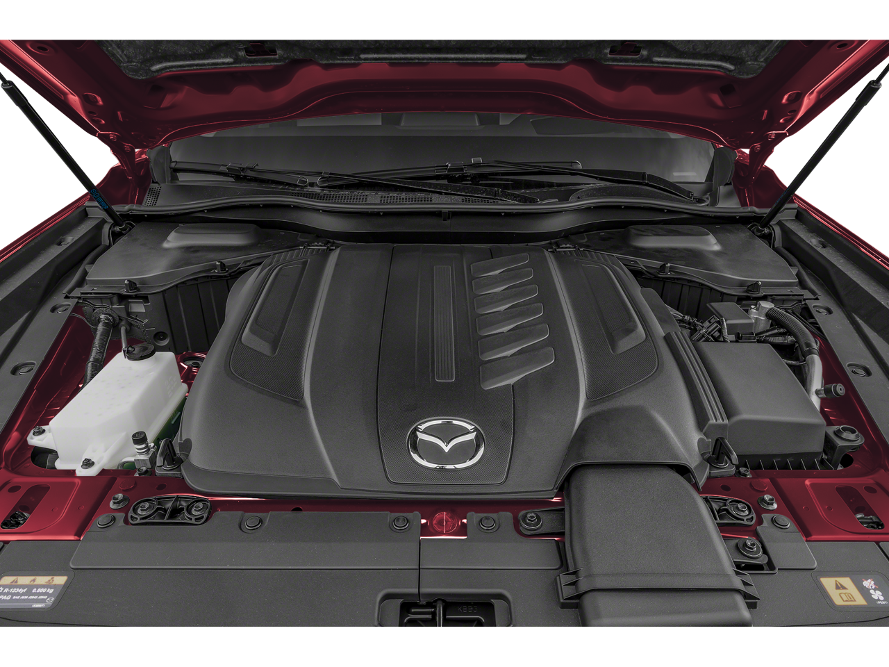 12 Speakers, 3rd row seats: bench, 4-Wheel Disc Brakes, ABS brakes, Air Conditioning, Alloy wheels, AM/FM radio: SiriusXM, Artisan Red Premium Paint Charge, Auto High-beam Headlights, Auto-dimming door mirrors, Automatic temperature control, Brake assist, Bumpers: body-color, Compass, Delay-off headlights, Digital Rearview Mirror w/HomeLink, Driver door bin, Driver vanity mirror, Dual front impact airbags, Dual front side impact airbags, E911 Automatic Emergency Notification, Electronic Stability Control, Emergency communication system: MAZDA CONNECT, Four wheel independent suspension, Front anti-roll bar, Front Bucket Seats, Front Center Armrest w/Storage, Front dual zone A/C, Front reading lights, Fully automatic headlights, Garage door transmitter: HomeLink, Heads-Up Display, Heated door mirrors, Heated front seats, Heated rear seats, Heated steering wheel, Heated/Ventilated Front Bucket Seats, Illuminated entry, Infotainment System Voice Command, Knee airbag, Leather Shift Knob, Leather steering wheel, Low tire pressure warning, Mazda Connected Services, Mazda Navigation System, Memory seat, Nappa Leather Seat Trim, Navigation system: MAZDA CONNECT, Occupant sensing airbag, Outside temperature display, Overhead airbag, Overhead console, Pandora Internet Radio Integration, Panic alarm, Passenger door bin, Passenger vanity mirror, Power door mirrors, Power driver seat, Power Liftgate, Power moonroof, Power passenger seat, Power steering, Power windows, Radio Broadcast Data System Program Information, Radio data system, Radio: AM/FM w/HD/Bose 12-Speaker Sound System, Rain sensing wipers, Rear air conditioning, Rear anti-roll bar, Rear reading lights, Rear window defroster, Rear window wiper, Remote keyless entry, Security system, SMS Text Msg Audio Delivery & Reply, Speed control, Speed-sensing steering, Split folding rear seat, Spoiler, Steering wheel mounted audio controls, Tachometer, Telescoping steering wheel, Tilt steering wheel, Traction control, Trip computer, Turn signal indicator mirrors, Variably intermittent wipers, Ventilated front seats, Wheels: 21 x 9.5J Aluminum Alloy.